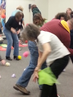 She had segments where she introduced props like paper plates and scarves. These added another dimension to the activities. You could tell by the expressions on the participants' and by their body language that ALL were enjoying themselves.